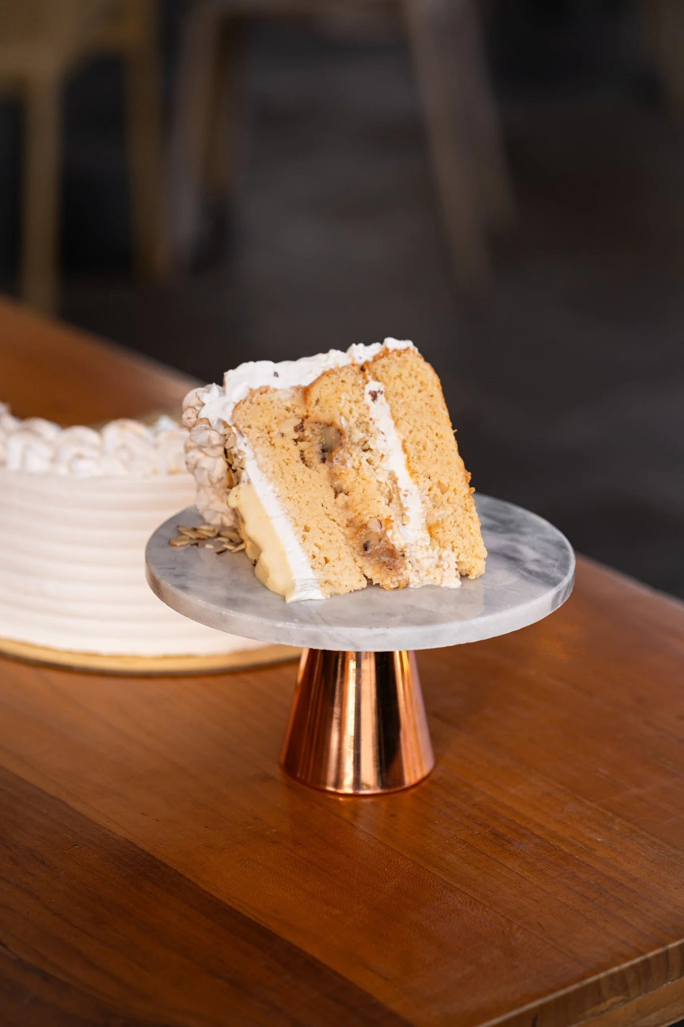 Nuestra Crocante Alemana tiene bizcochos bañados en tres leches con un toque de ron, dos rellenos irresistibles: un cremoso de leche condensada con almendras y otro de leche condensada y almendras.